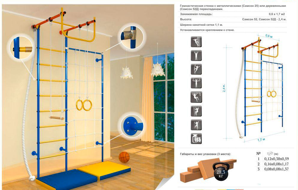 Включает: гимнастическую стенку с металлическими перекладинами.